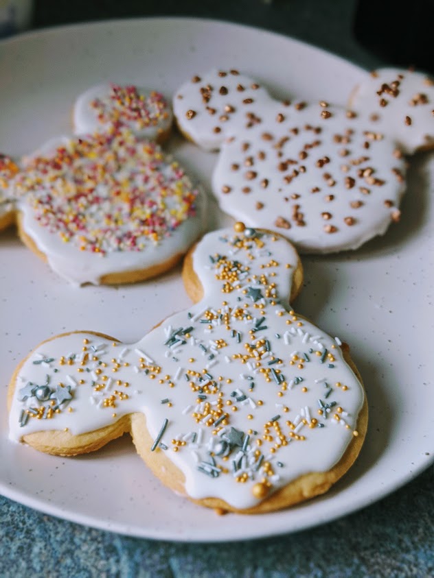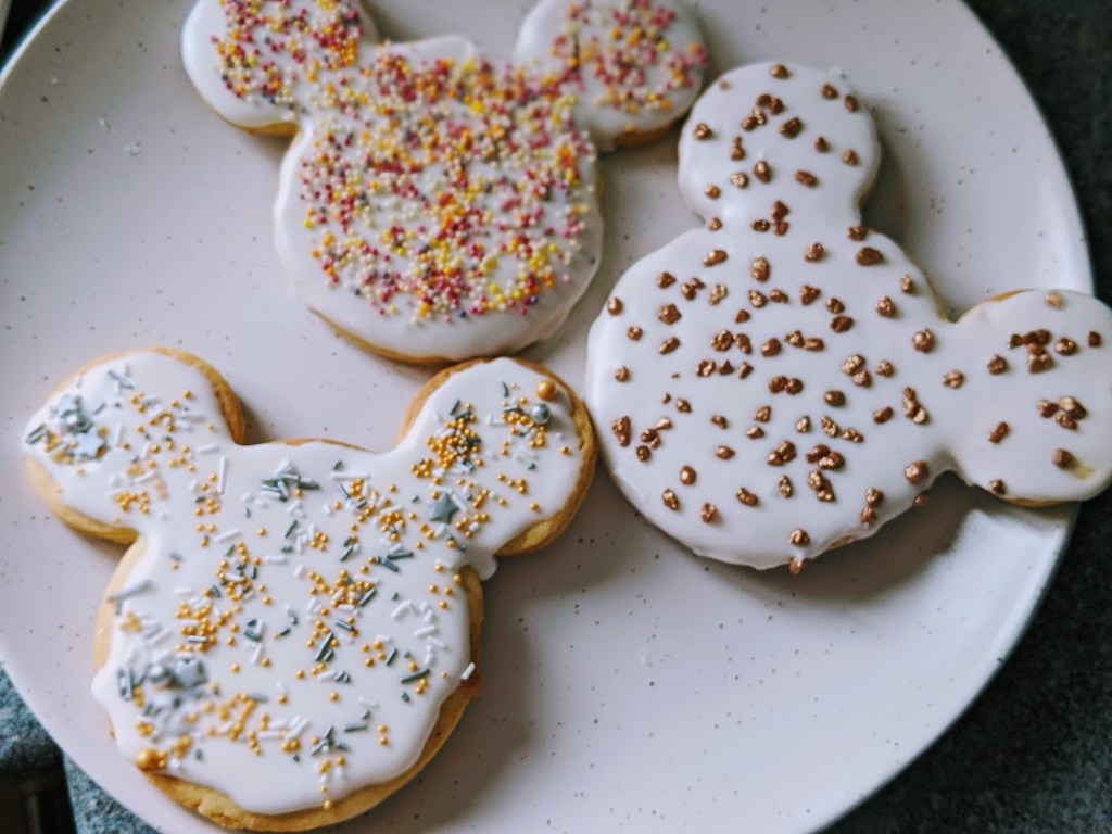 For my Mickey cookies, I simply piped on some thinned royal icing and covered in a variety of sprinkles (I have a surprisingly large collection of sprinkles in my cupboard). If you’re looking for a more exciting way of decorating your Mickey cookies (as you should be), I came across this amazing post from We Know Disney who have decorated using food colouring mixed with alcohol to make rainbow cookies! I will definitely attempt this sometime soon!