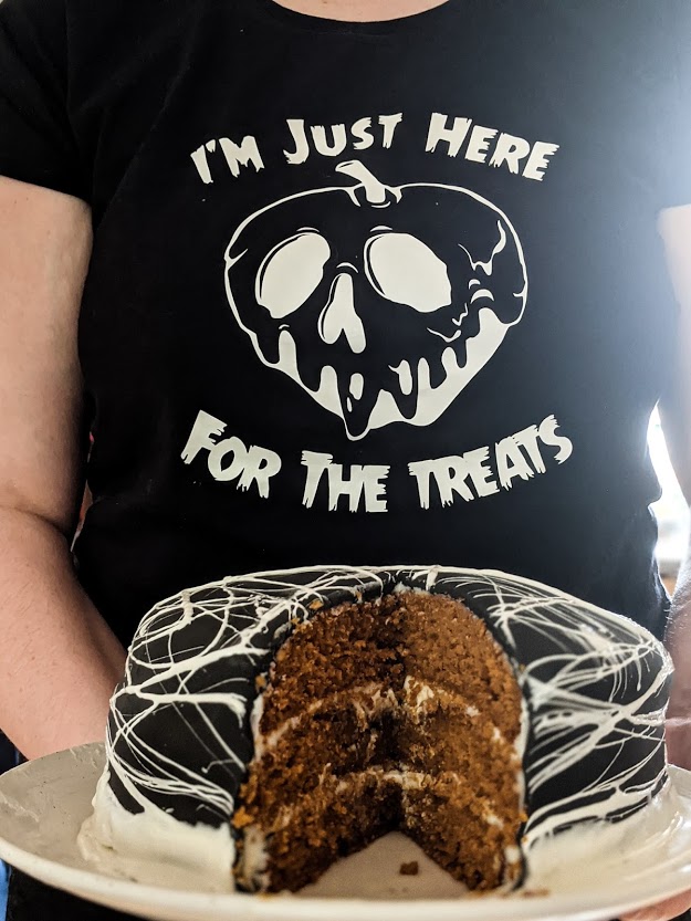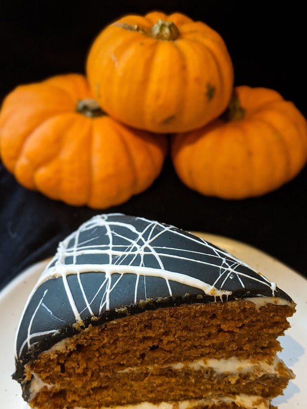 This snack post combines a few of my favourite things- cake, marshmallows and Tim Burton/Disney films! I’d seen the black fondant/white marshmallow cobwebs in a few places this spooky season, and thought it would go great with a pumpkin spice cake, as a nice change from regular cake. Plus, the black and white exterior matches Jack Skellington’s outfit and he is, of course, the Pumpkin King! Of course, living in the northern hemisphere makes October so much more Halloweenish than at home when it’s turning into summer!